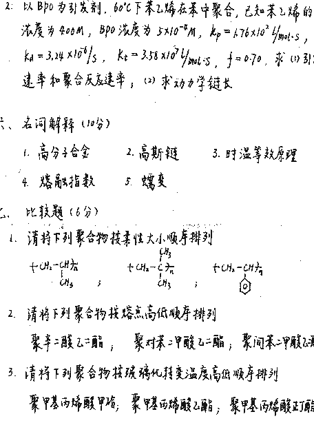 相关话题/考研真题 南开大学 高分子物理 高分子化学