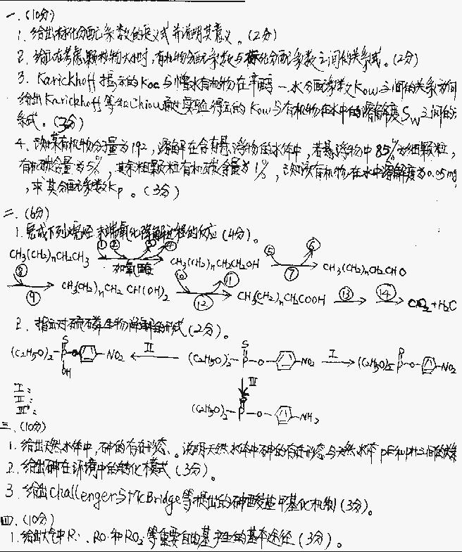 专业课考研经验 本站小编 FreeKaoyan 2018-01-22一、名词解释:(24%6×4%)1 环境质量基准2。污染物总量控制3 清洁生产4 IS0140005 地而水环境质量标准中所划定的混合区6 烟尘控制区覆盖率二、选择:(20%10×2%)1。1996年10月1日我国实行的新的大气环境质量标准,与旧标准比较,新增加的几种大气污染物是:()A)HFB)T ...