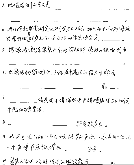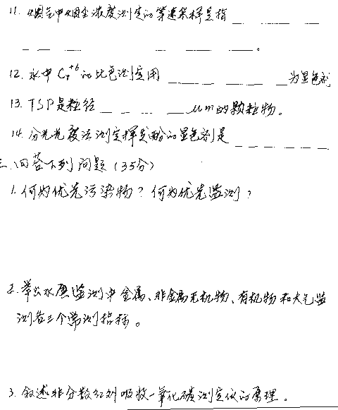 专业课考研经验 本站小编 FreeKaoyan 2018-01-22一、名词解释:(24%6×4%)1 环境质量基准2。污染物总量控制3 清洁生产4 IS0140005 地而水环境质量标准中所划定的混合区6 烟尘控制区覆盖率二、选择:(20%10×2%)1。1996年10月1日我国实行的新的大气环境质量标准,与旧标准比较,新增加的几种大气污染物是:()A)HFB)T ...