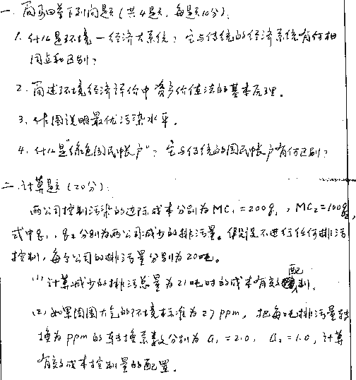 专业课考研经验 本站小编 FreeKaoyan 2018-01-22一、名词解释:(24%6×4%)1 环境质量基准2。污染物总量控制3 清洁生产4 IS0140005 地而水环境质量标准中所划定的混合区6 烟尘控制区覆盖率二、选择:(20%10×2%)1。1996年10月1日我国实行的新的大气环境质量标准,与旧标准比较,新增加的几种大气污染物是:()A)HFB)T ...