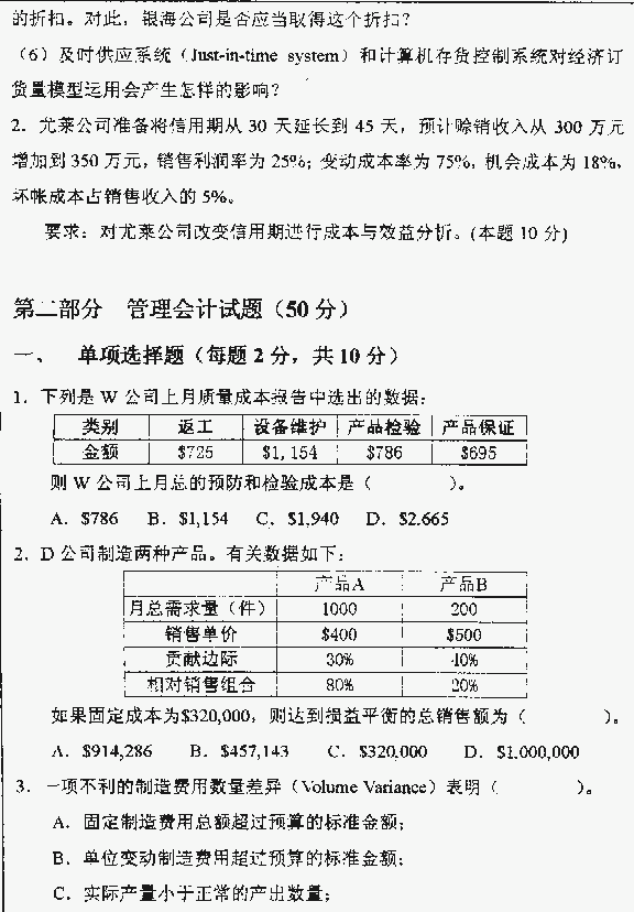 一、简答下述问题(26分)1.(5分)3MV公司拟向银行借款10亿元人民币,期限为3年。3H银行可提年单利为8.75%的贷款,而3F银行可提供每半年计息一次的年利率为8%的复利贷款。两种贷款均于期末一次还本付息。问3MN公司接受哪家银行贷款,为什么?2.(5分)什么是财务杠杆?说明权益回报率的财务杠 ...