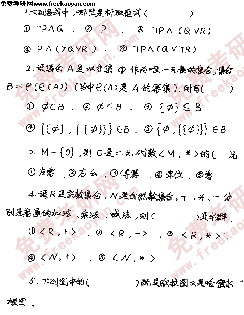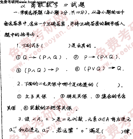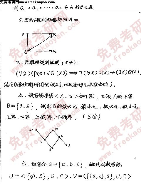 重庆大学1998年考研真题-计算机原理(含离散数学基础)考研试题