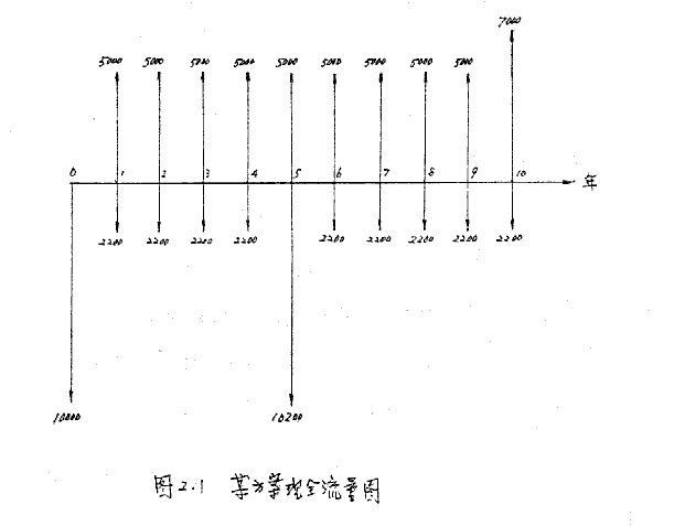 2、某方案现金流量图如图2.1所示,现金流单位为元,折现率(复利系数)为10%,试用净现值法论证方案可行否。