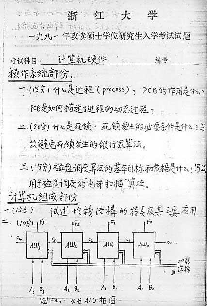 专业课考研经验 本站小编 FreeKaoyan 2018-01-22浙江大学1994年考研真题-计算机硬件