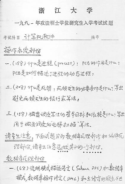 专业课考研经验 本站小编 FreeKaoyan 2018-01-22浙江大学1992年考研真题-计算机软件