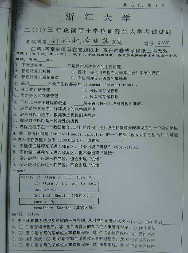 相关话题/考研真题 浙江大学 基础 计算机科学