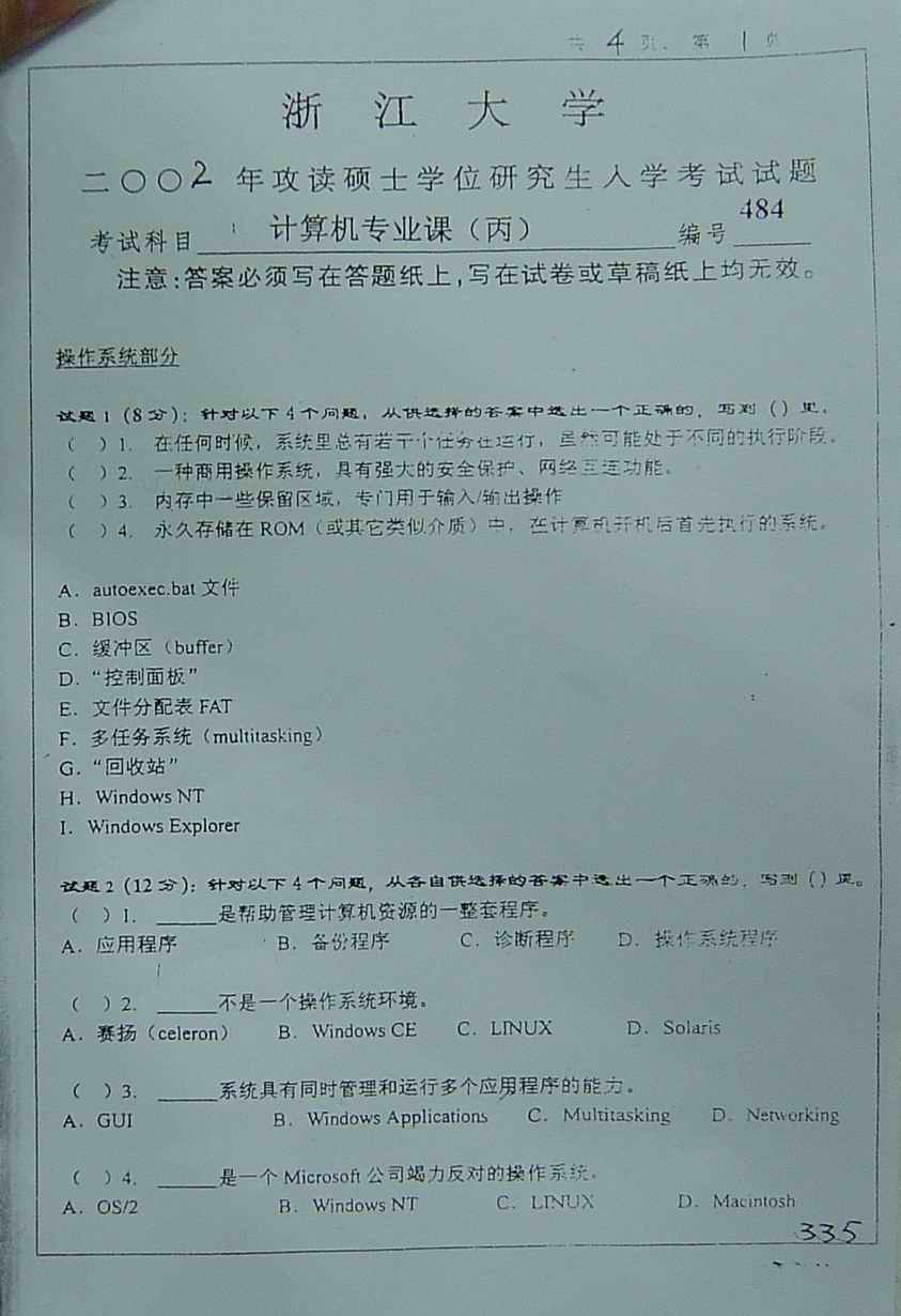 专业课考研经验 本站小编 FreeKaoyan 2018-01-22浙江大学2004年考研真题-计算机专业课甲2