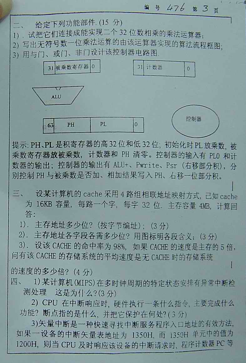 专业课考研经验 本站小编 FreeKaoyan 2018-01-22浙江大学1996年考研真题-计算机硬件