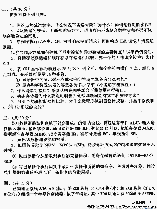 专业课考研经验 本站小编 FreeKaoyan 2018-01-22电子科技大学2000年考研真题-微机原理与数字电路