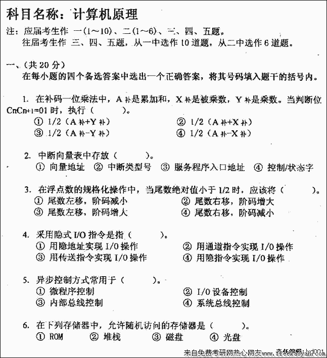 电子科大1999微机原理与数字电路试题 考试科目:微机原理与数字电路 注:应届生作所有不加*的题,往届生可在加*号题与同序号不加*号题中任选一题。 一、单项选择题(共10分)从每小题的四个备选答案中,选出一个正确答案,并将正确答案的番号填入题干的括号内。 1、 从8086CPU的内部结构上看,其是由 ...专业课考研经验 本站小编 FreeKaoyan 2018-01-22浙江大学1998年考研真题-计算机科学基础