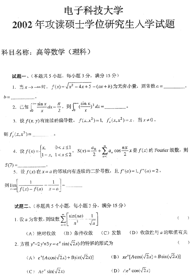 专业课考研经验 本站小编 FreeKaoyan 2018-01-22电子科技大学2002年考研真题-信号与系统