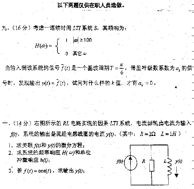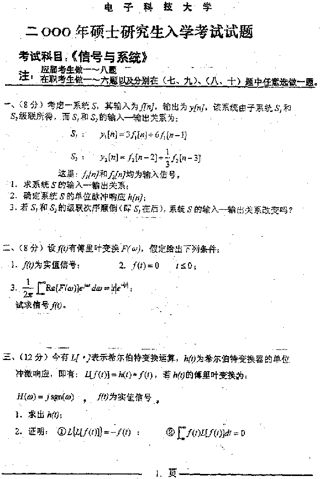 专业课考研经验 本站小编 FreeKaoyan 2018-01-22电子科技大学2002年考研真题-信号与系统