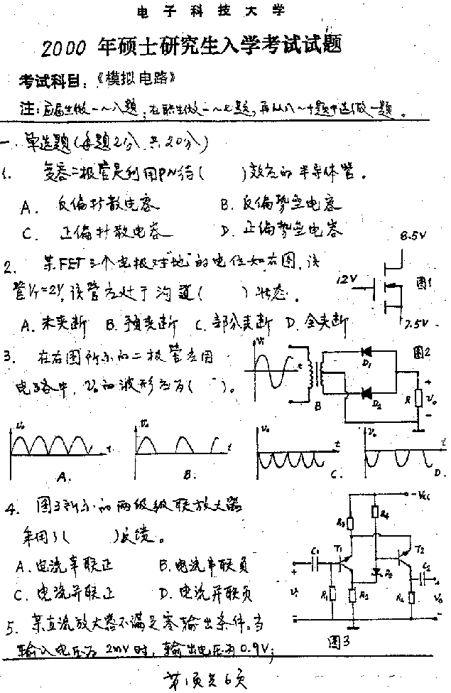 专业课考研经验 本站小编 FreeKaoyan 2018-01-22电子科技大学2002年考研真题-数字电路与模拟电路