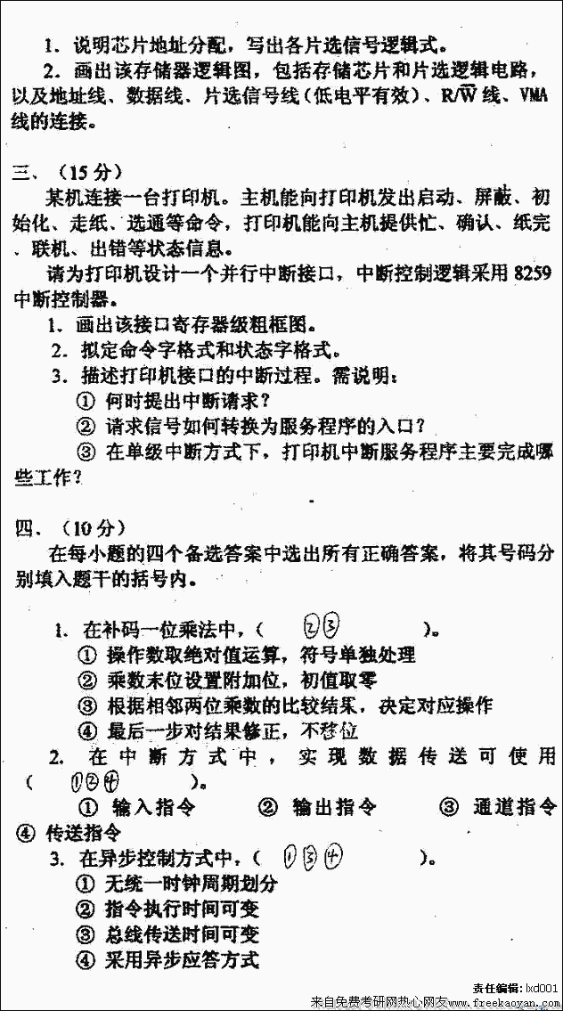 专业课考研经验 本站小编 FreeKaoyan 2018-01-22电子科技大学2002年考研真题-微机原理及应用