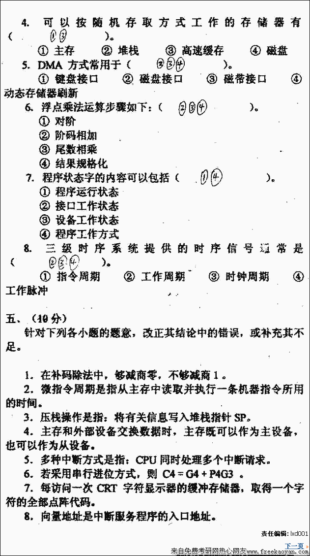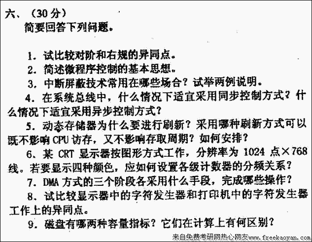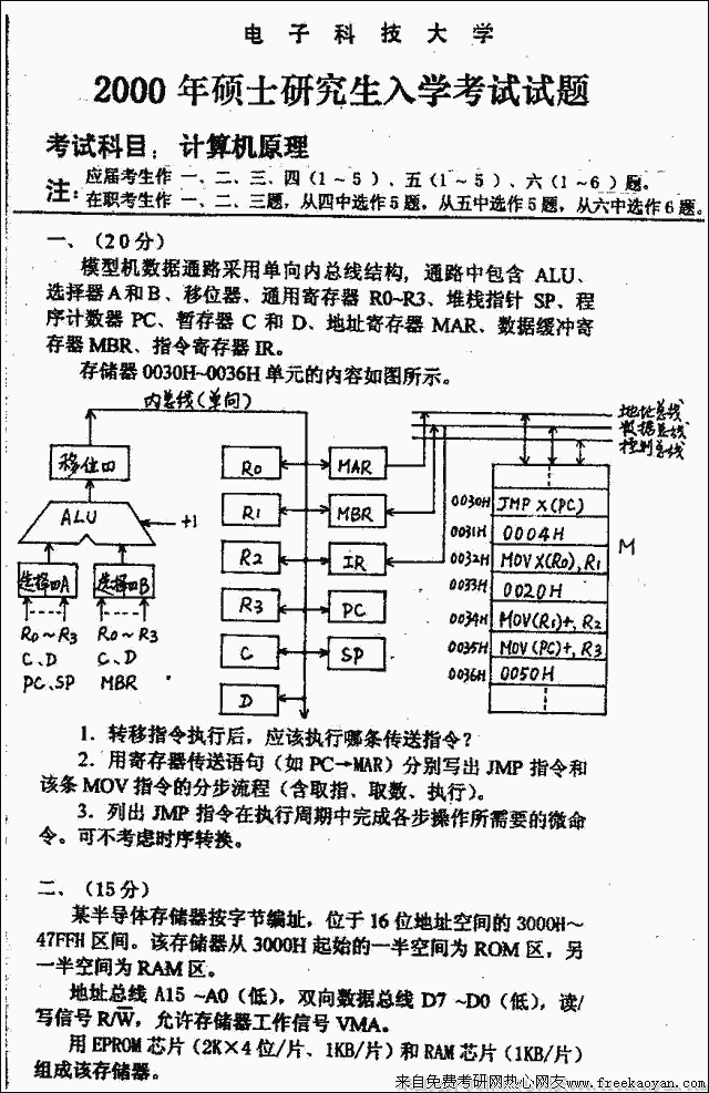 专业课考研经验 本站小编 FreeKaoyan 2018-01-22电子科技大学2001年考研真题-计算机原理