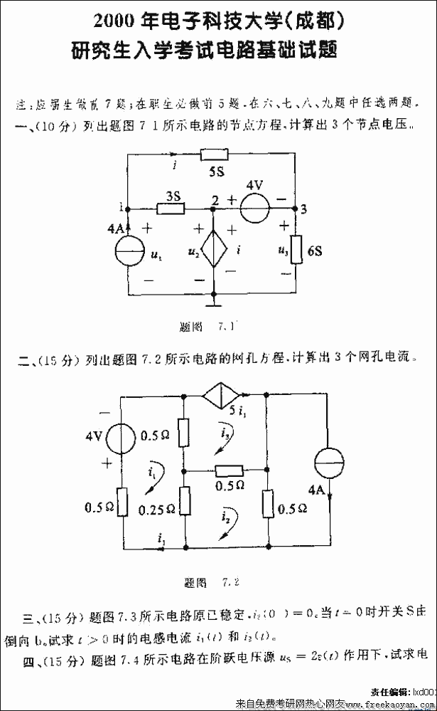 专业课考研经验 本站小编 FreeKaoyan 2018-01-22电子科技大学2000年考研真题-模拟电路