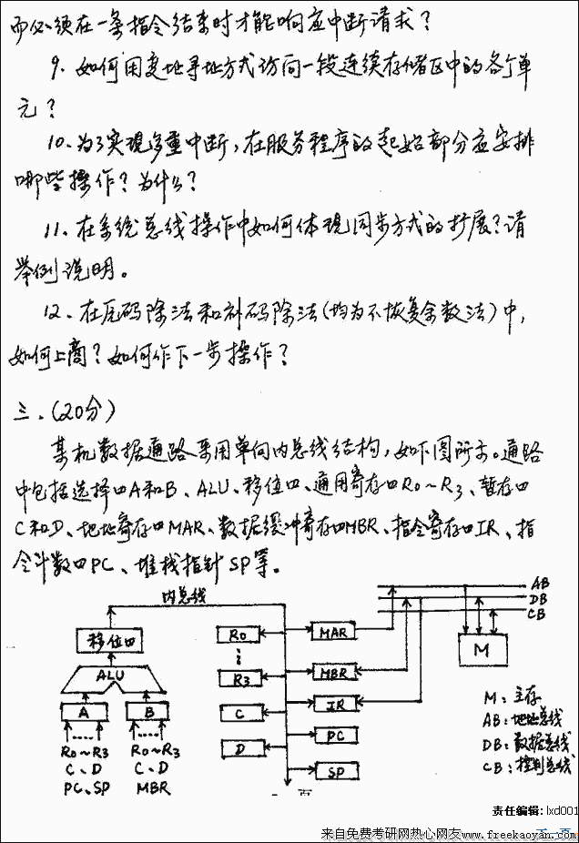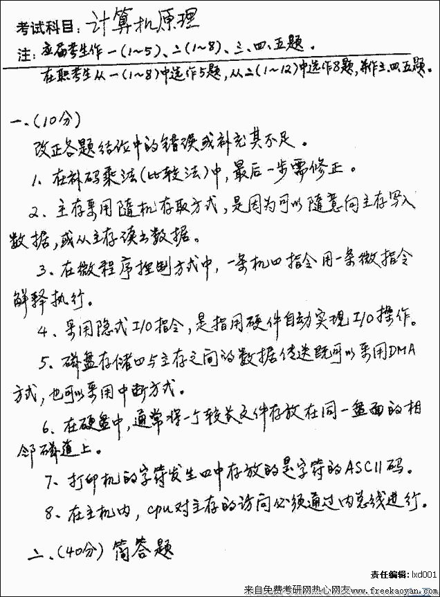 专业课考研经验 本站小编 FreeKaoyan 2018-01-22电子科技大学2001年考研真题-计算机原理