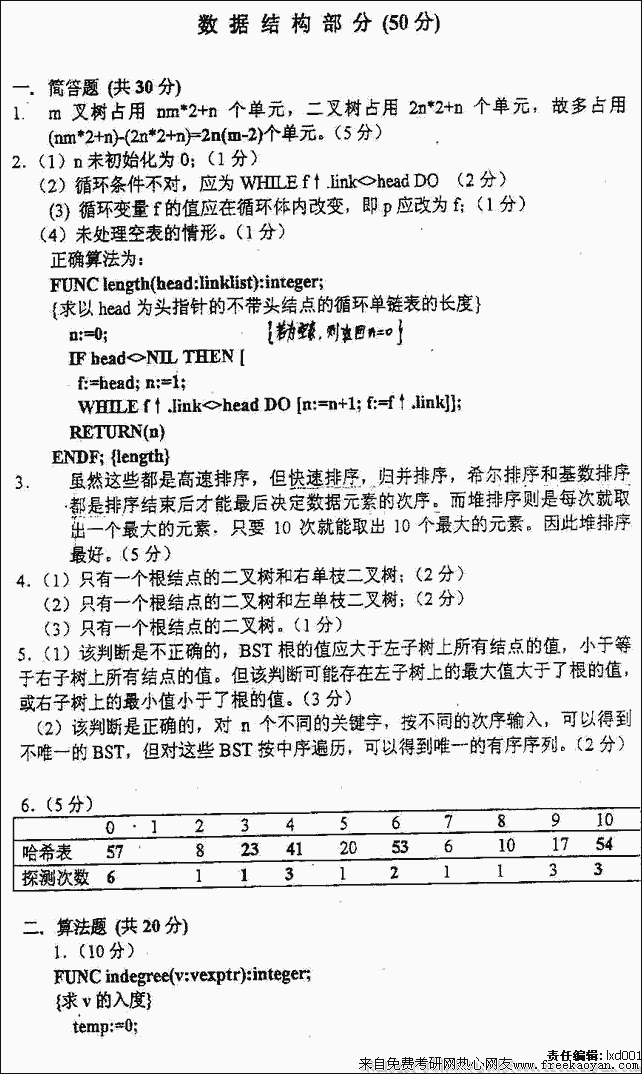 相关话题/电子科技大学 考研真题 数据结构