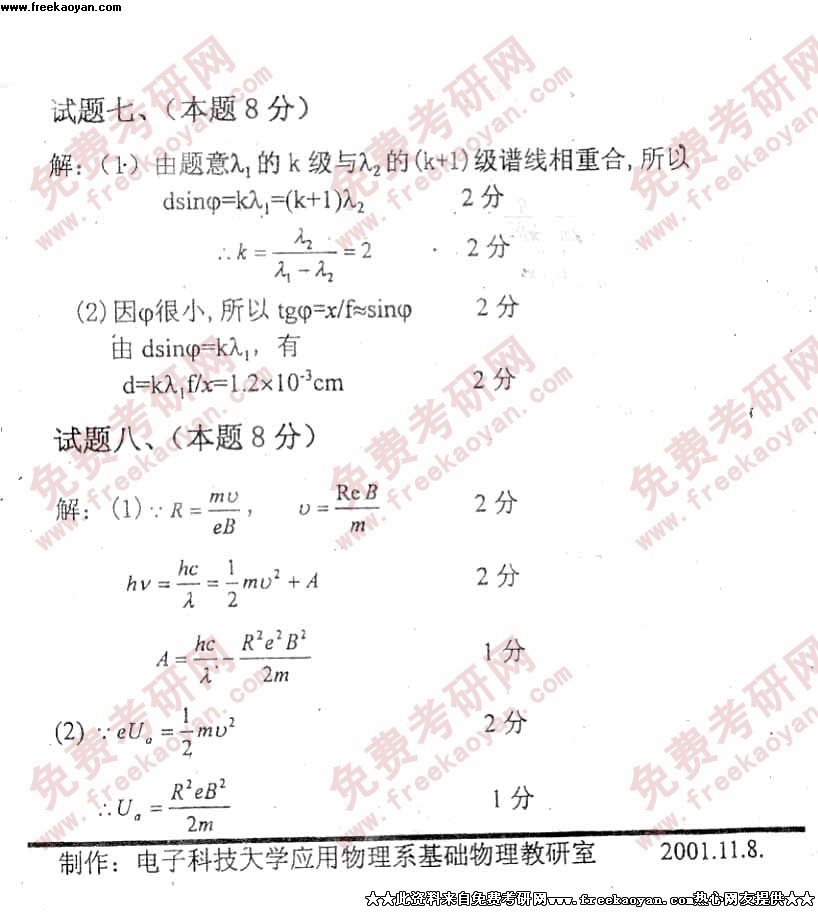 电子科技大学2002年考研真题-电路分析基础与模拟电路