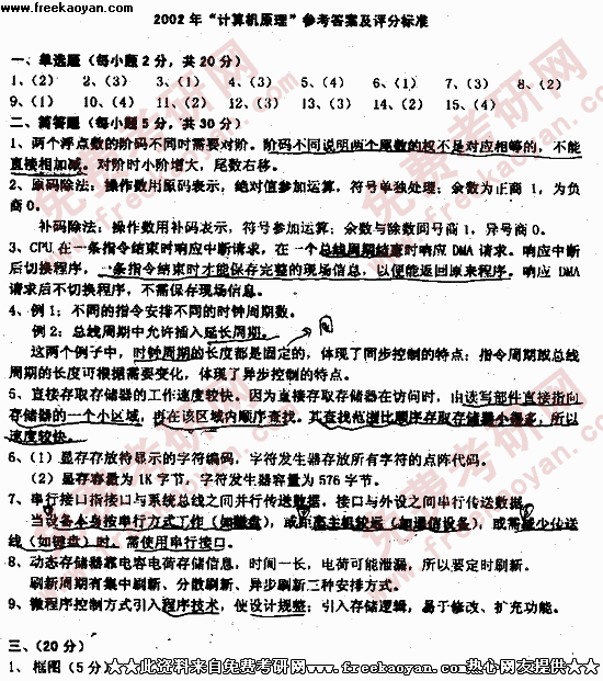 电子科技大学2002年考研真题-计算机原理答案