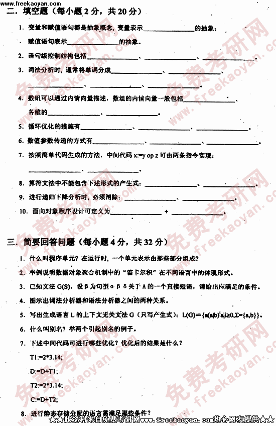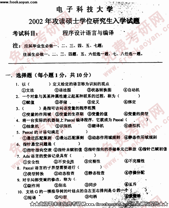 电子科技大学2002年考研真题-程序设计语言与编译答案