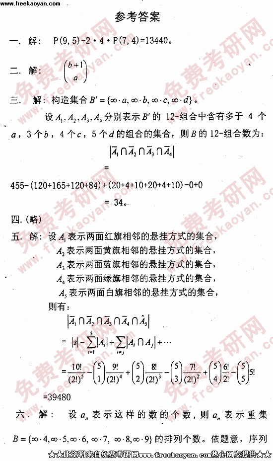 电子科技大学2001年考研真题-组合数学答案