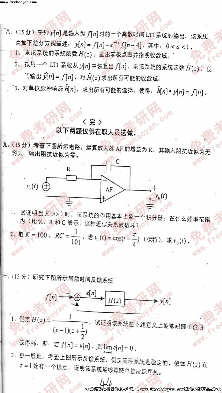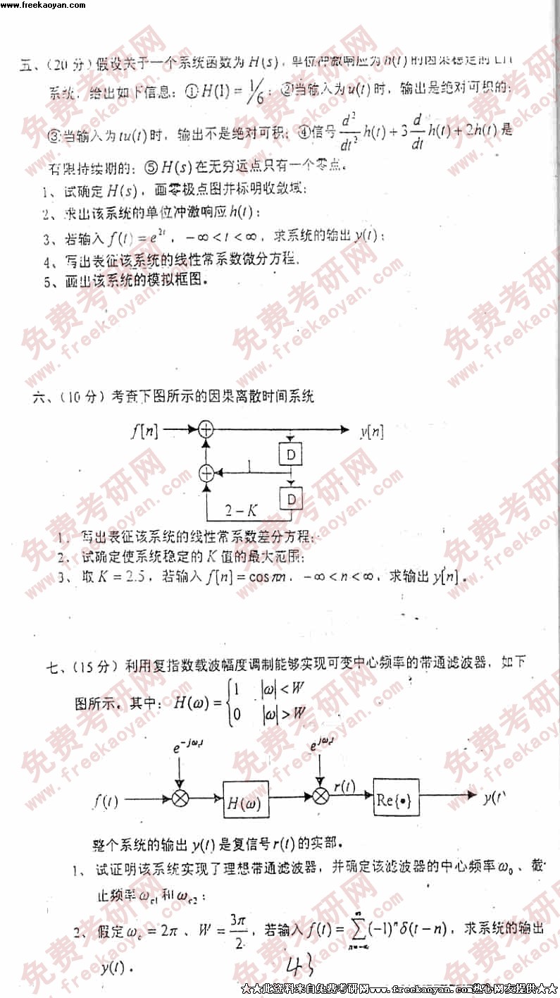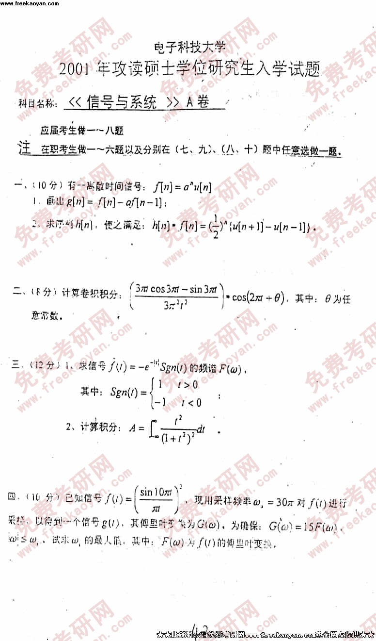 电子科技大学2001年考研真题-信号与系统试题及答案