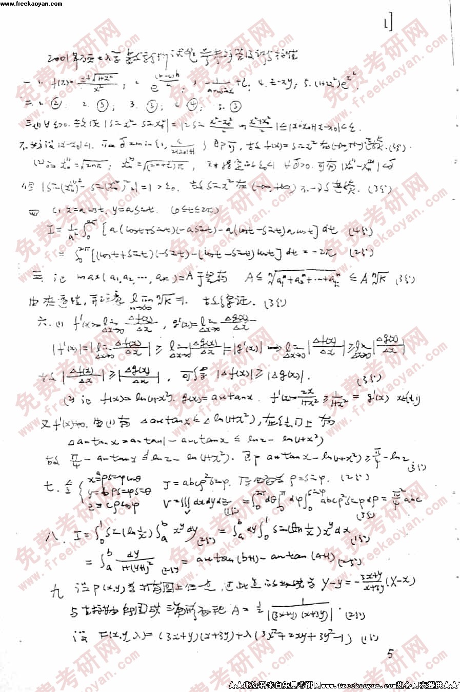 电子科技大学2001年考研真题-信号与系统A卷答案