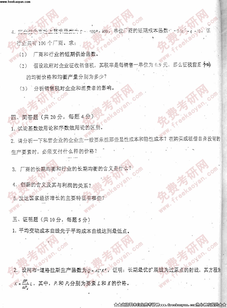 电子科技大学2001年考研真题-经济学基础试题答案