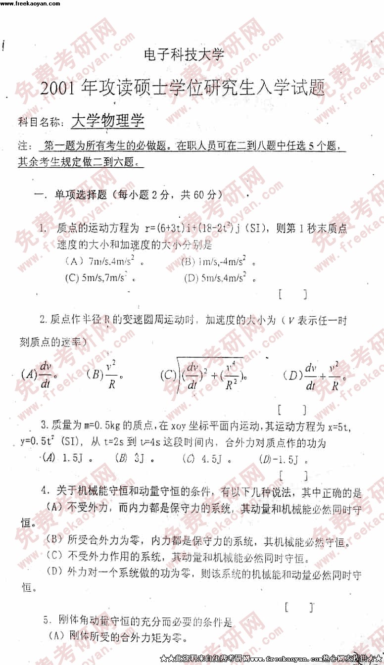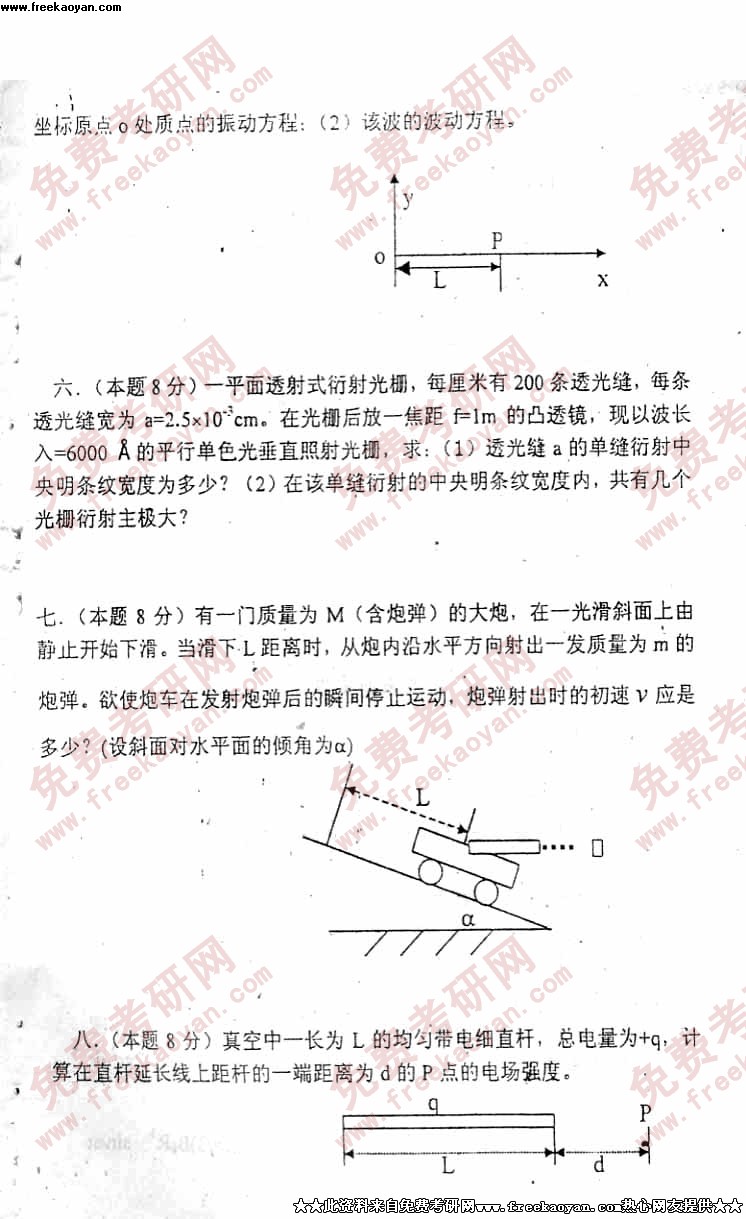 电子科技大学2001年考研真题-大学物理试题(不全)