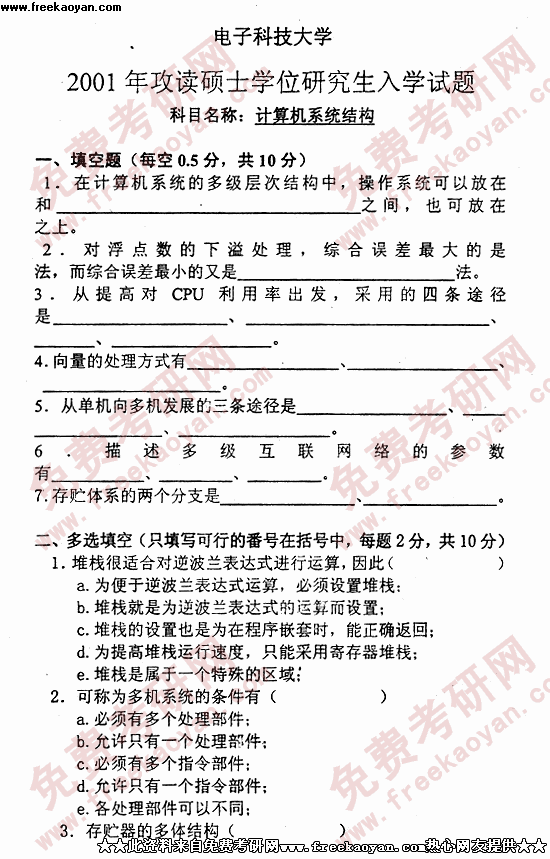 电子科技大学2001年考研真题-大学物理试题(不全)