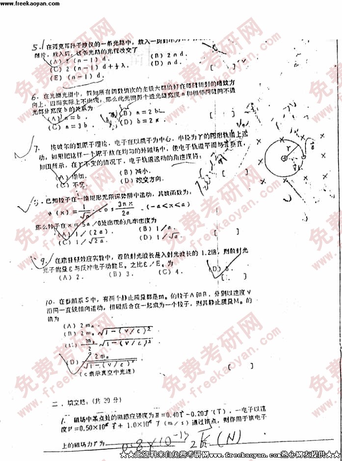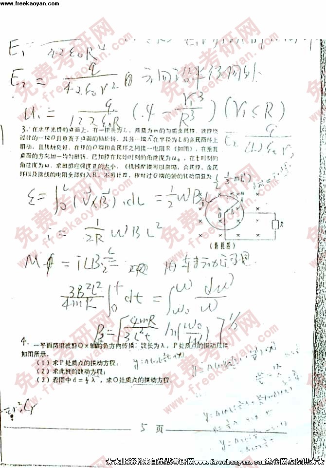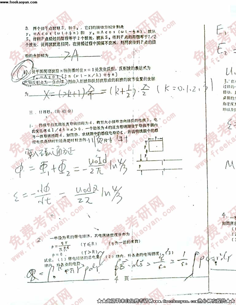 电子科技大学2001年考研真题-大学物理试题(不全)