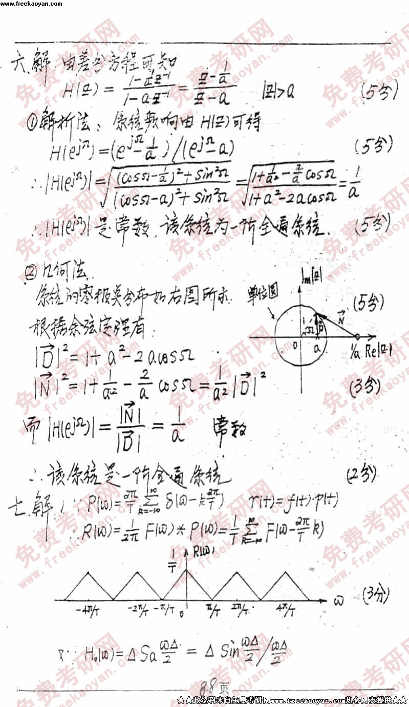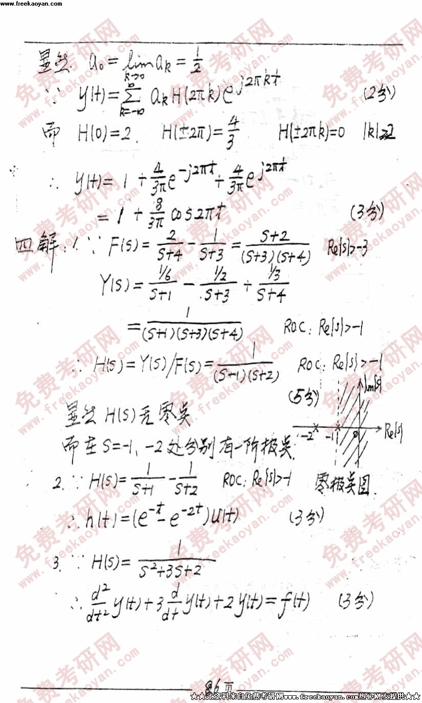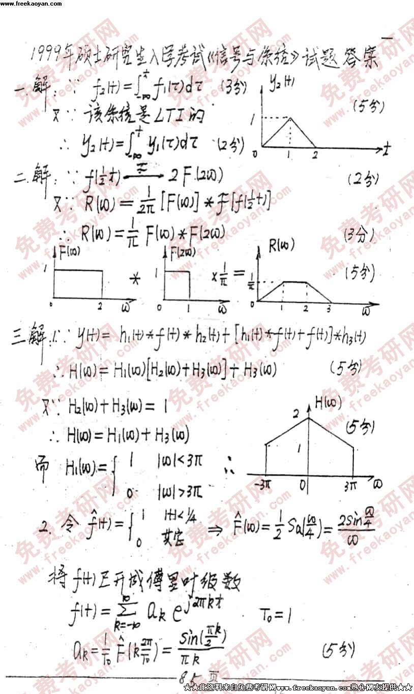 电子科技大学1999年考研真题-信号与系统答案