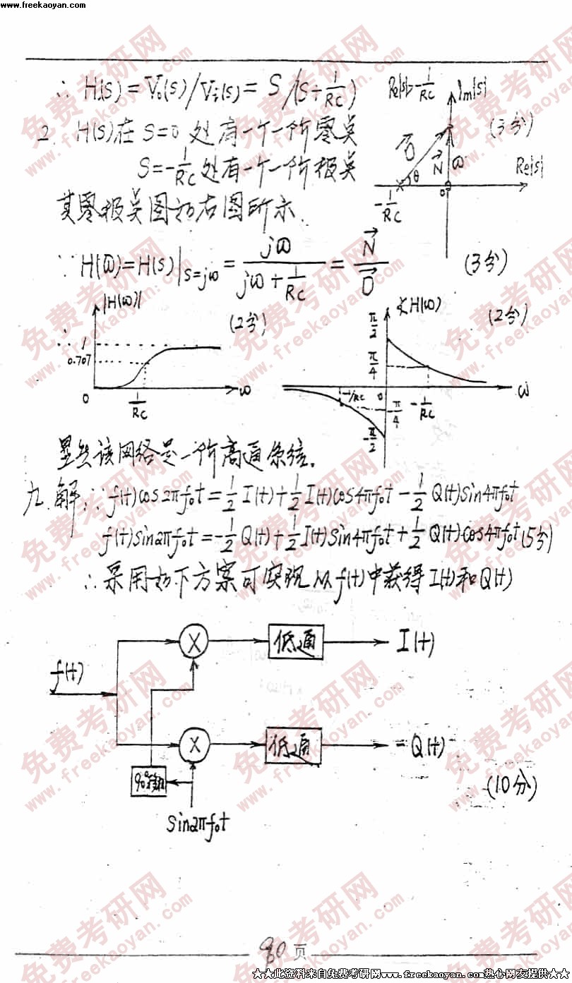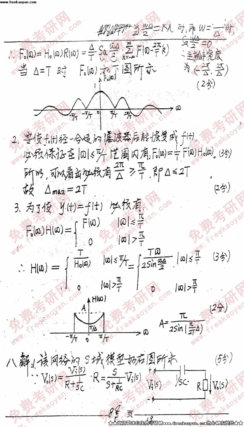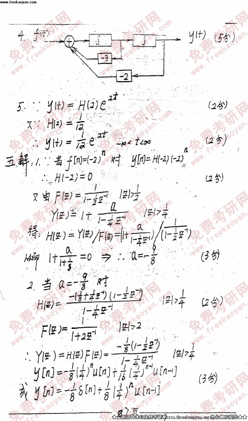 电子科技大学1999年考研真题-信号与系统答案