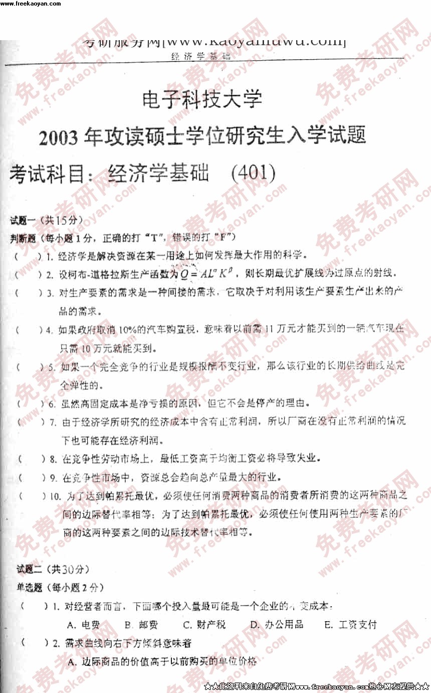 电子科技大学2003年考研真题-信号与系统+数字电路