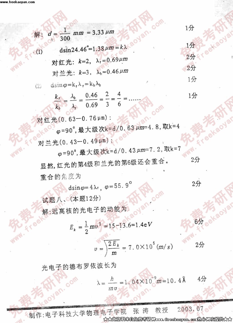 电子科技大学2003年考研真题-电路分析基础试题参考答案