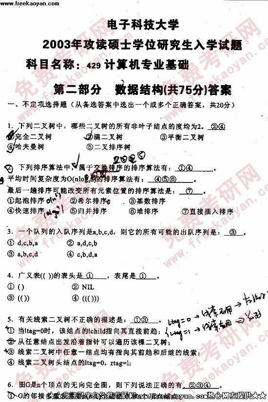 电子科技大学2003年考研真题-电路分析基础试题参考答案