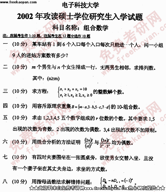 电子科技大学2002年考研真题-组合数学专业操作系统