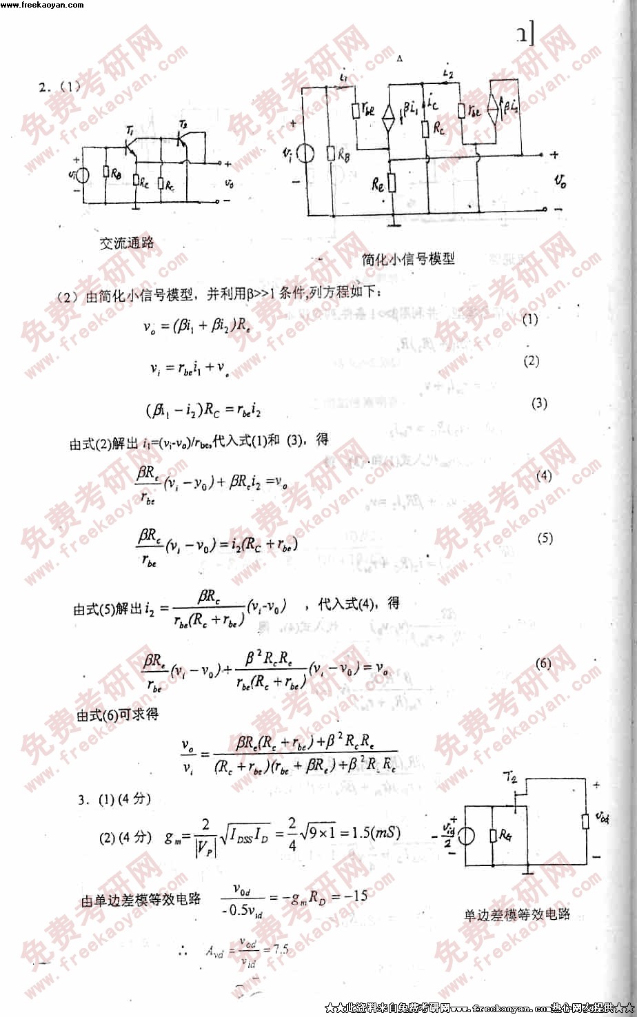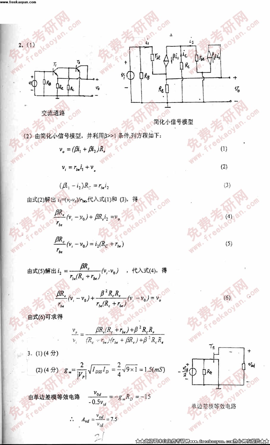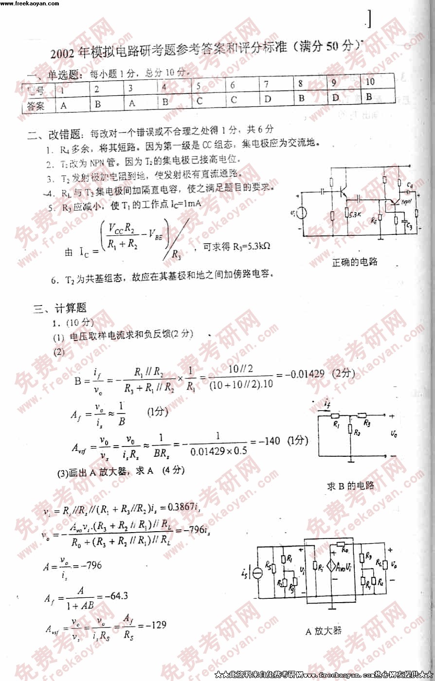 电子科技大学2002年考研真题-数字电路和模拟电路试题答案