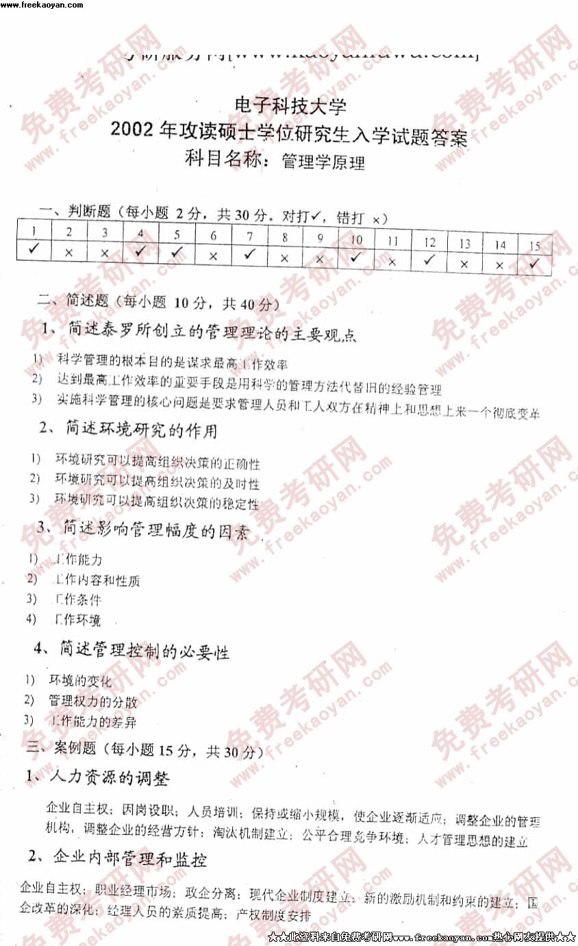 相关话题/考研真题 管理学原理 电子科技大学 试题答案