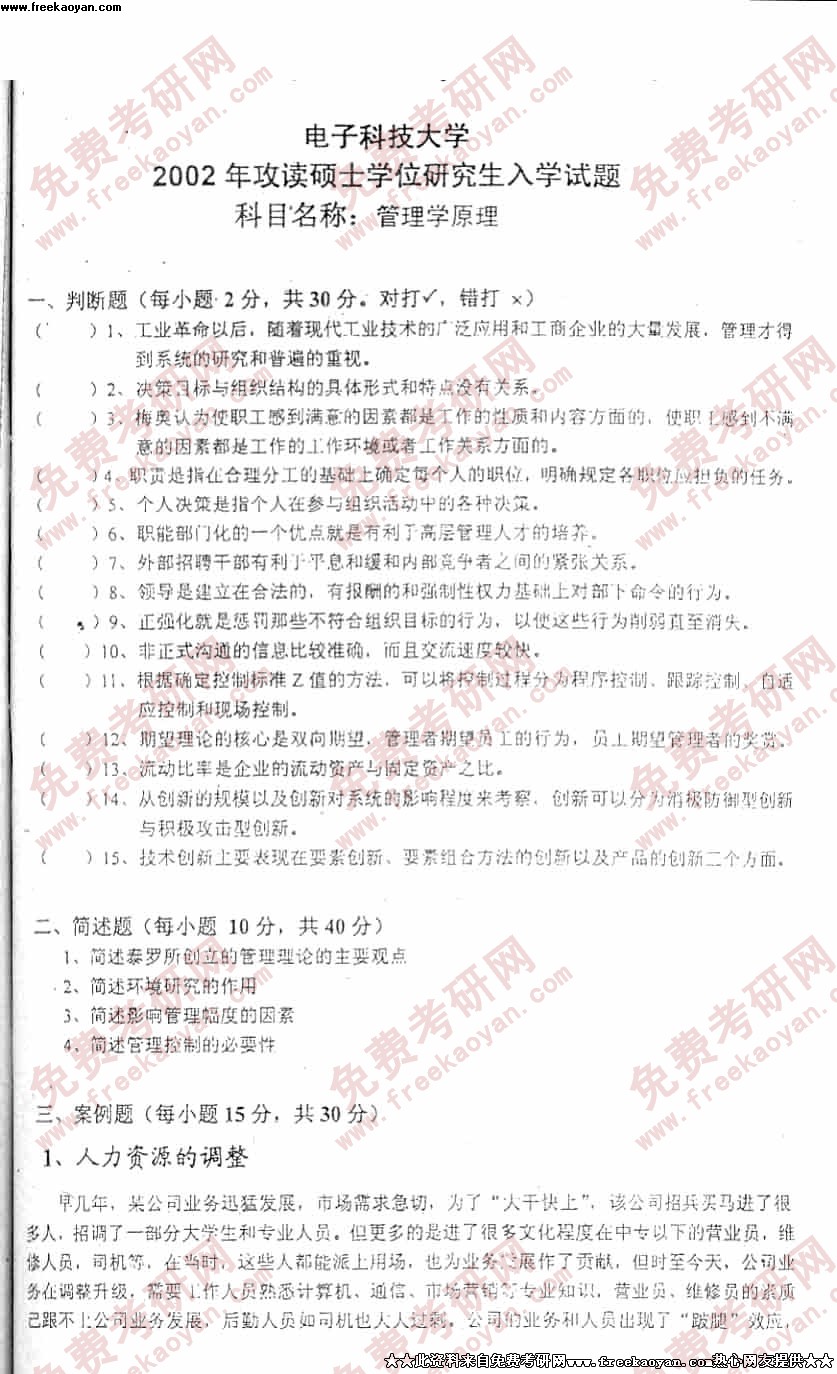 电子科技大学2002年考研真题-数字电路和模拟电路试题答案