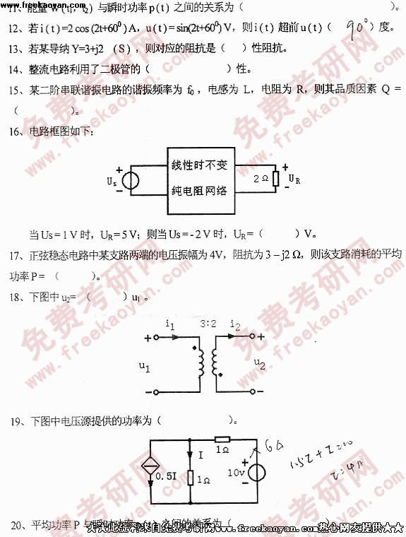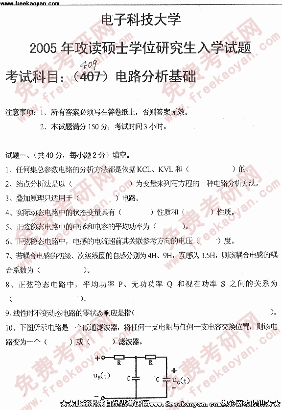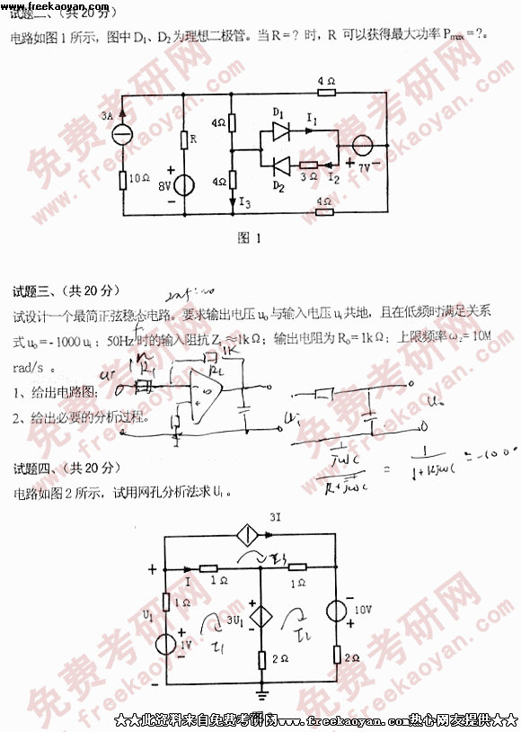 电子科技大学2002年考研真题-电路分析基础试题参考答案