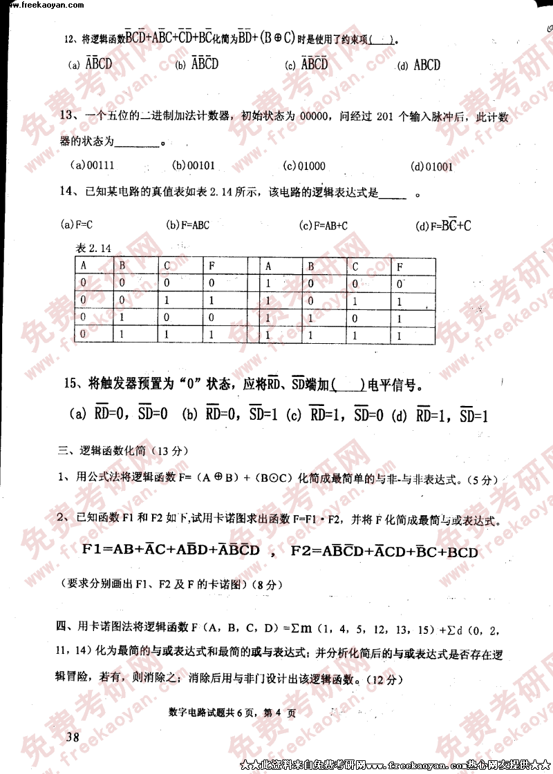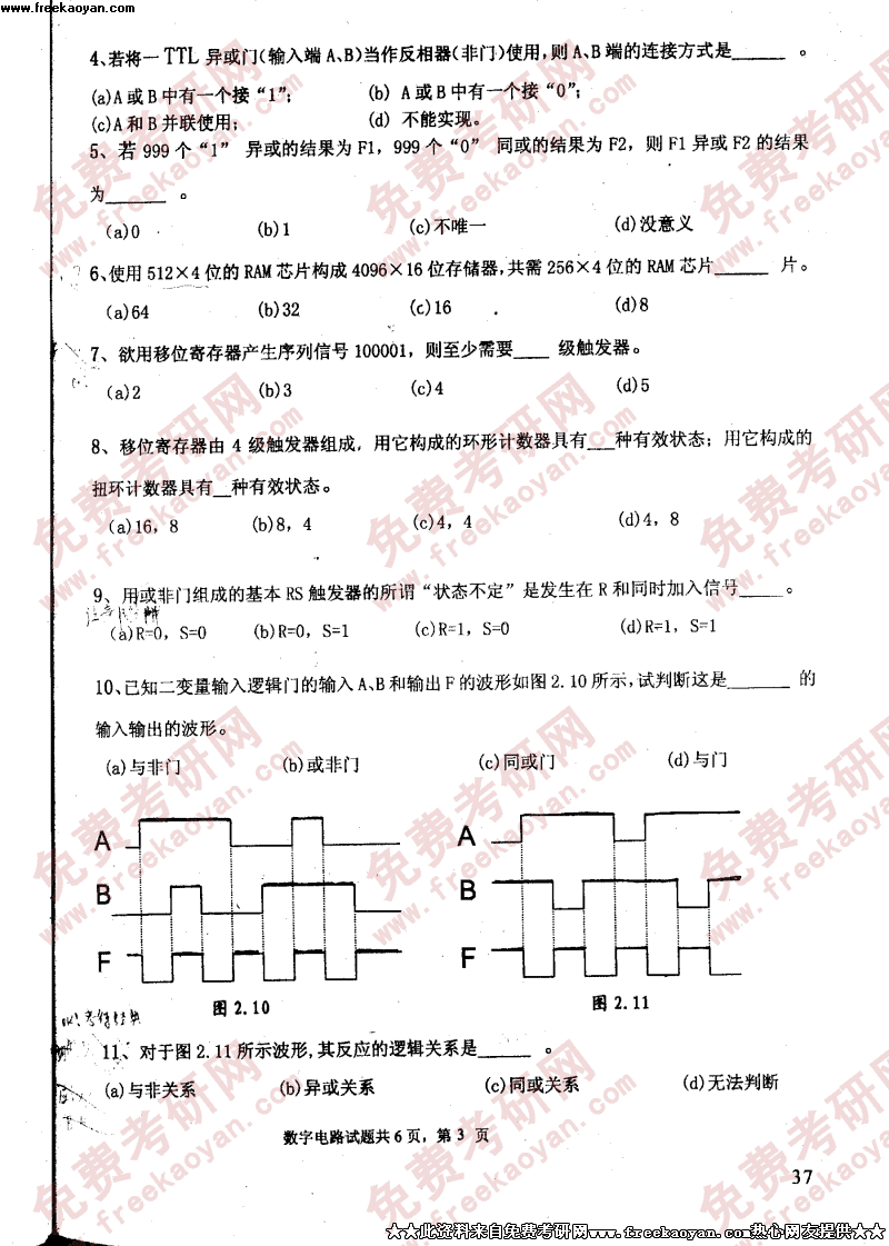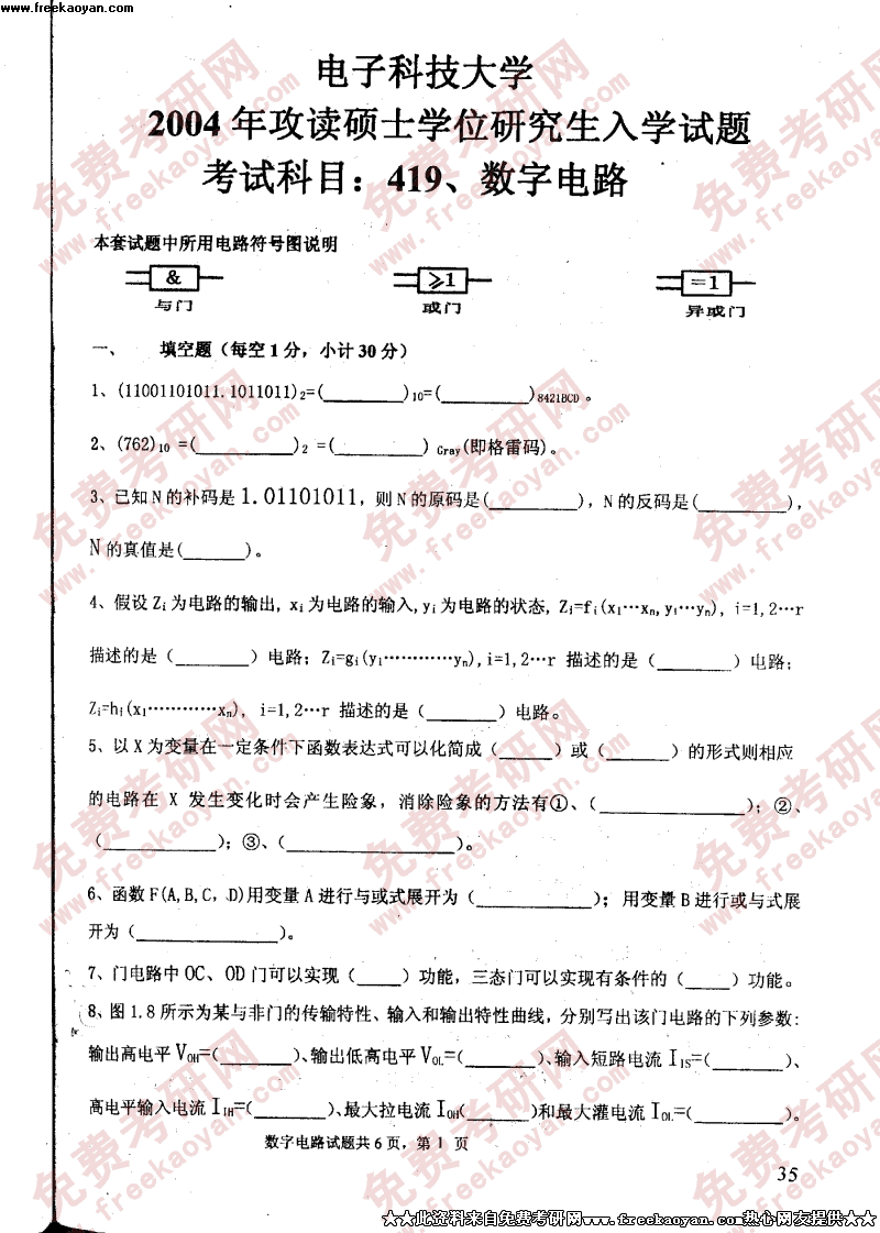 电子科技大学2004年考研真题-数字电路