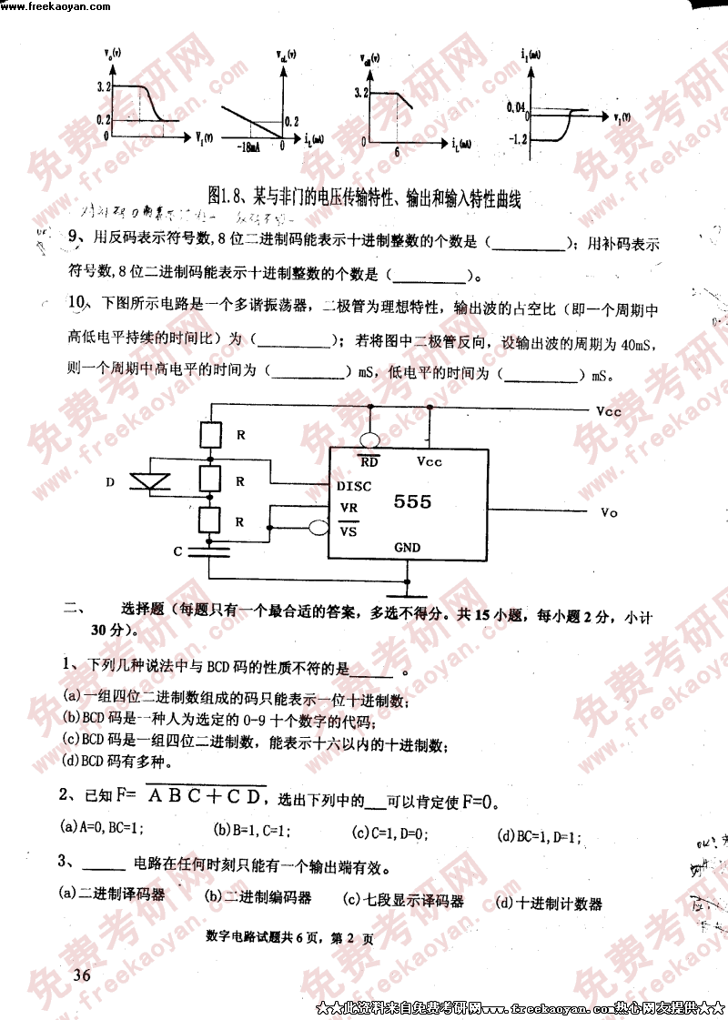 电子科技大学2004年考研真题-数字电路答案