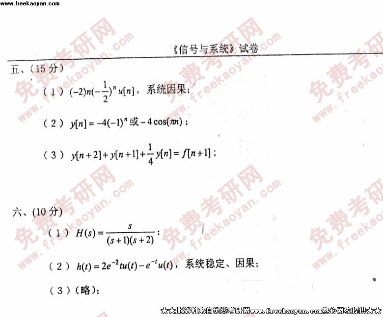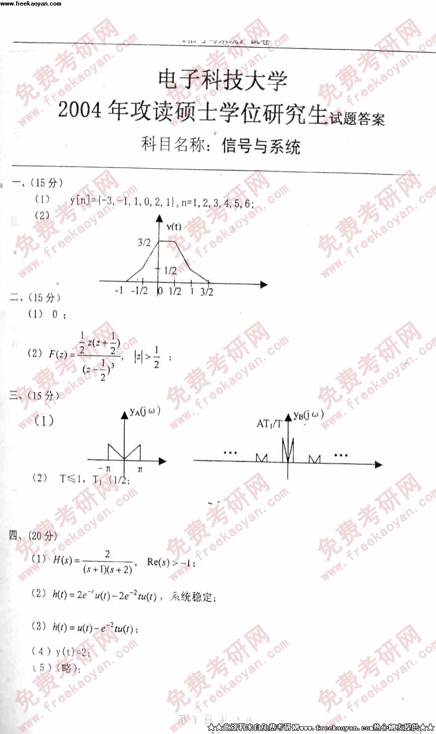 电子科技大学2004年考研真题-信号与系统答案