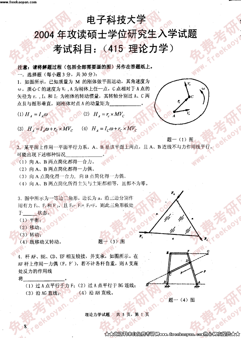 电子科技大学2004年考研真题-数字电路和模拟电路试题