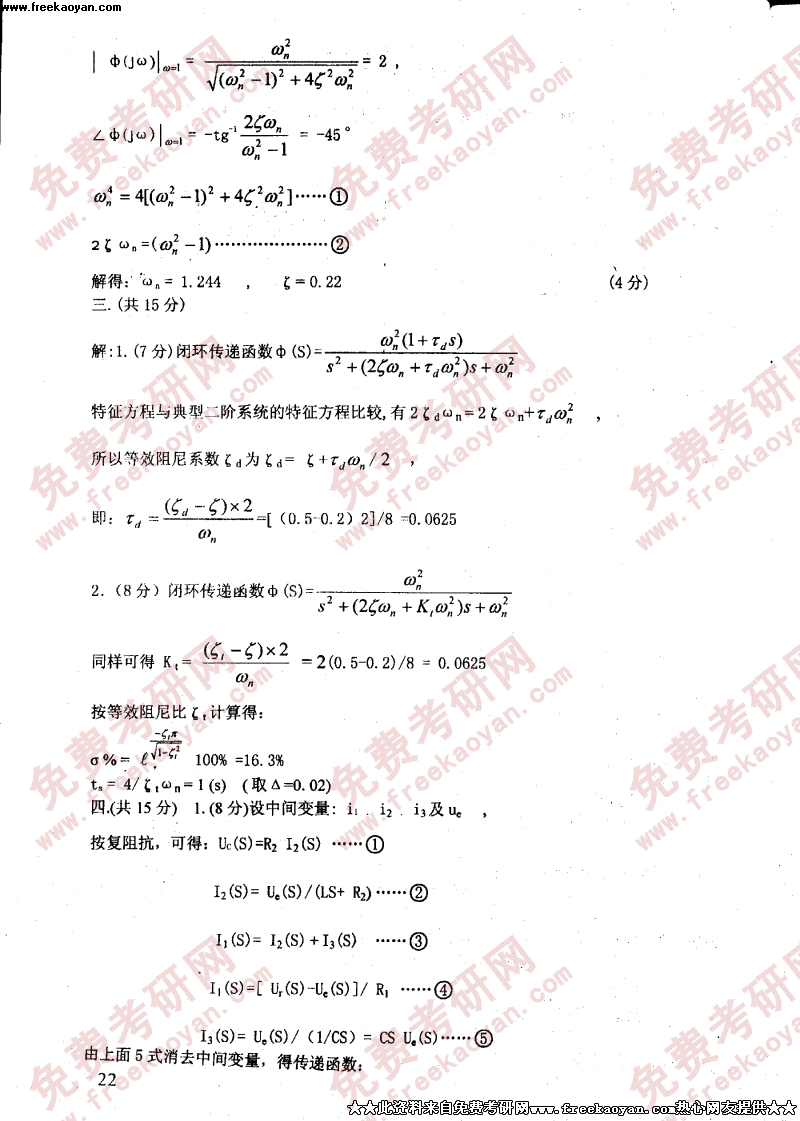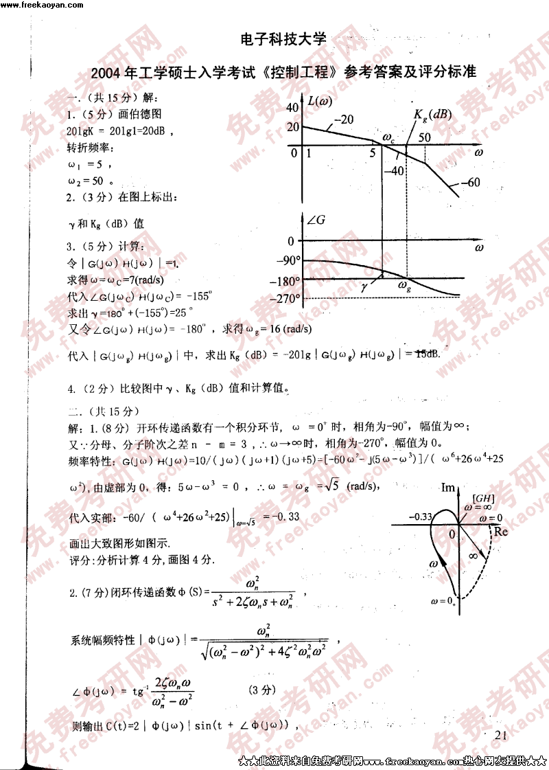 电子科技大学2004年考研真题-电路分析基础试题参考答案