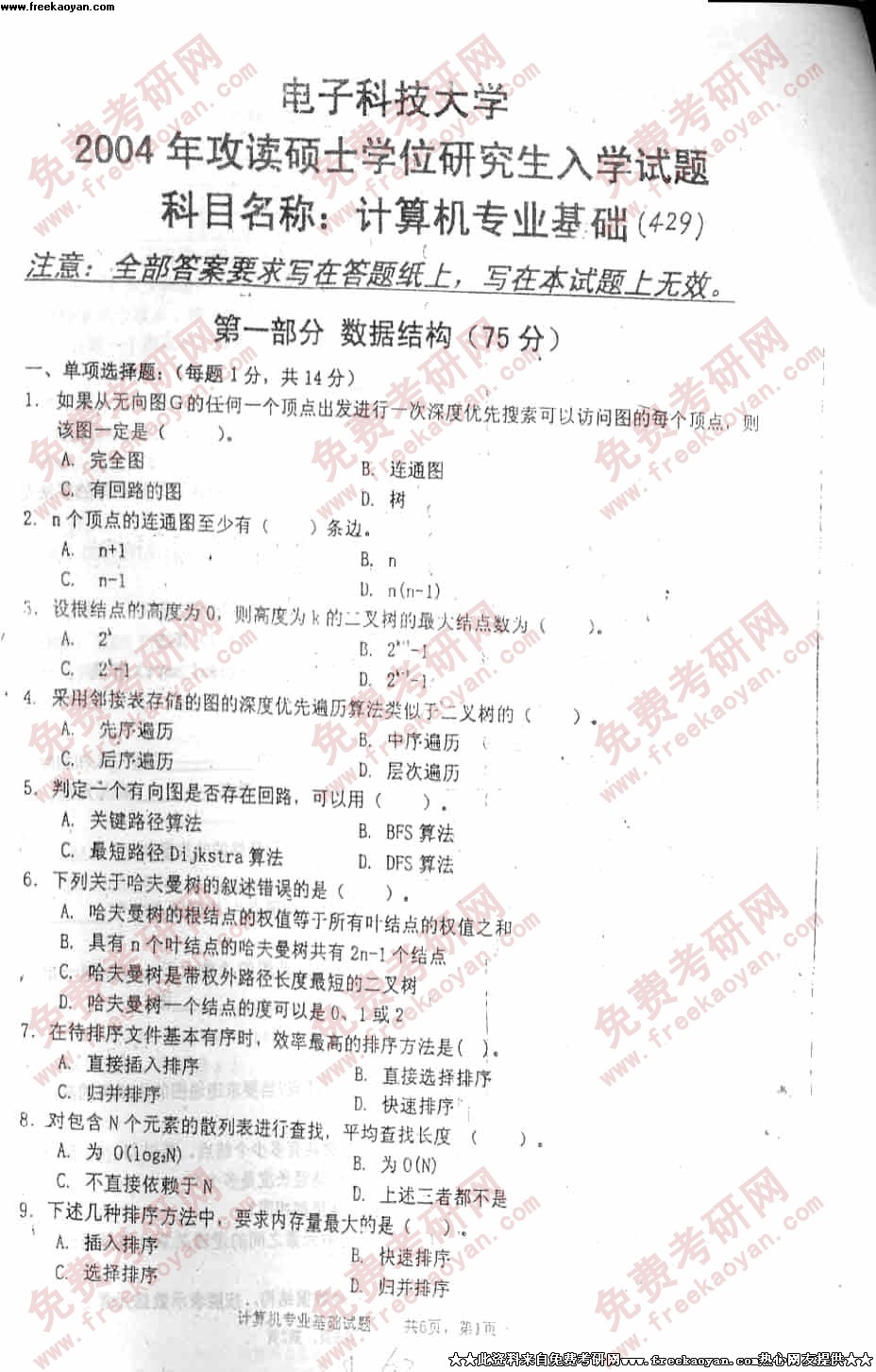 电子科技大学2004年考研真题-电路分析基础试题参考答案
