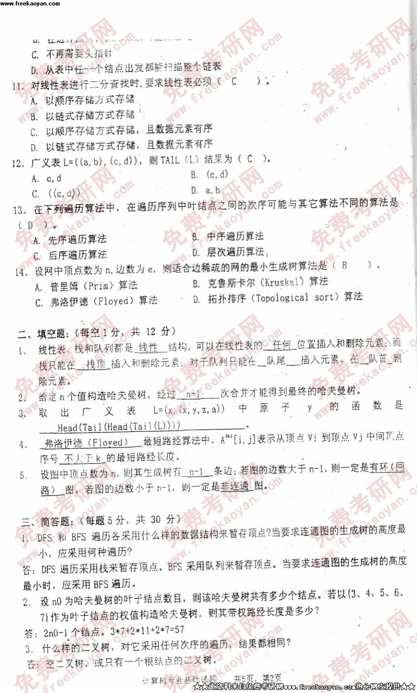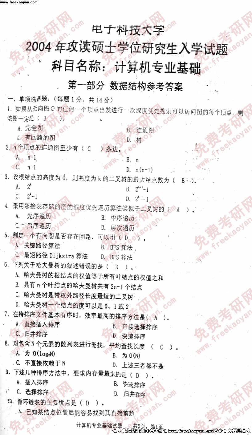 电子科技大学2004年考研真题-电路分析基础试题参考答案