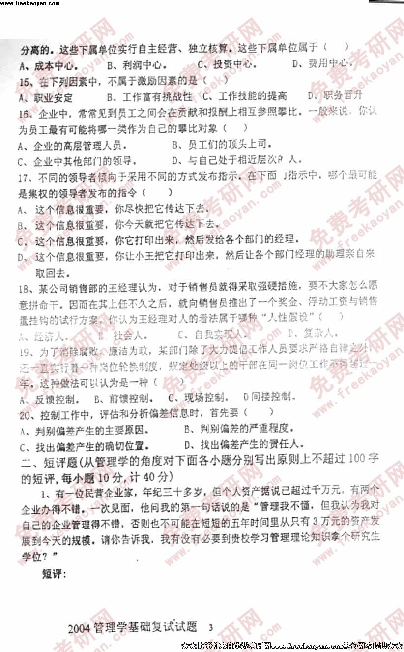 电子科技大学2004年考研真题-电路分析基础试题参考答案